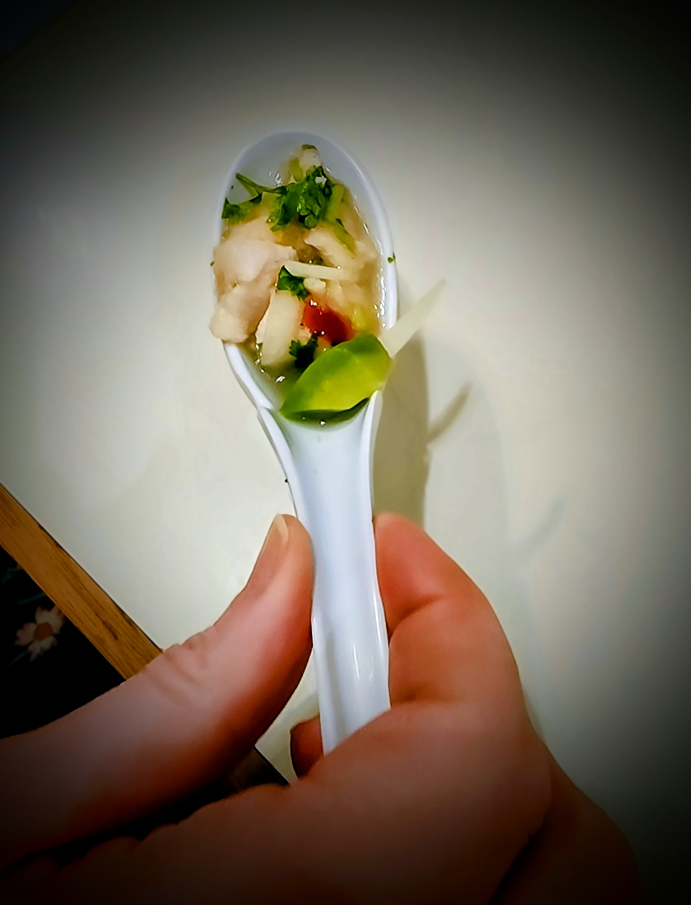 The fish-eaters also had a fresh grouper ceviche with lime juice, cilantro, onions, sriracha and aquacate (tropical avocado); mine was sans grouper. When Claudia tried to show us what tropical avocados look like, Sharon and I thought we already knew — after all, we’d been served avocado halves the size of footballs earlier in the week.