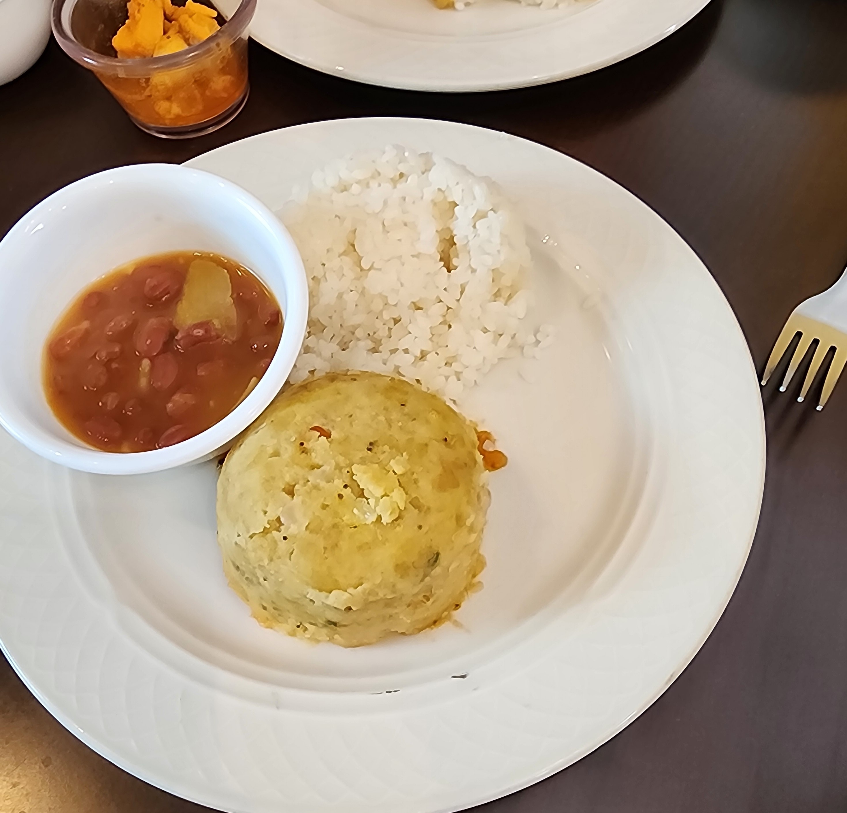 Here we had alcapurrias — deep-fried, cigar-shaped fritters of plantain, cassava, yucca dough with meat inside — that are always served very hot and are common street food, with everyone having their own dough recipe. They came with the ubiquitous pink sauce (ketchup + mayo; everywhere in Puerto Rico) and a runny, non-tomato-based hot sauce that Sharon loved so much she tried to buy a bottle for Donovan.