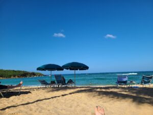 We ordered Painkiller cocktails and chicken quesadillas right on the beach, and a “cabana man” (definitely not a boy) came over and actually dug us in an umbrella.