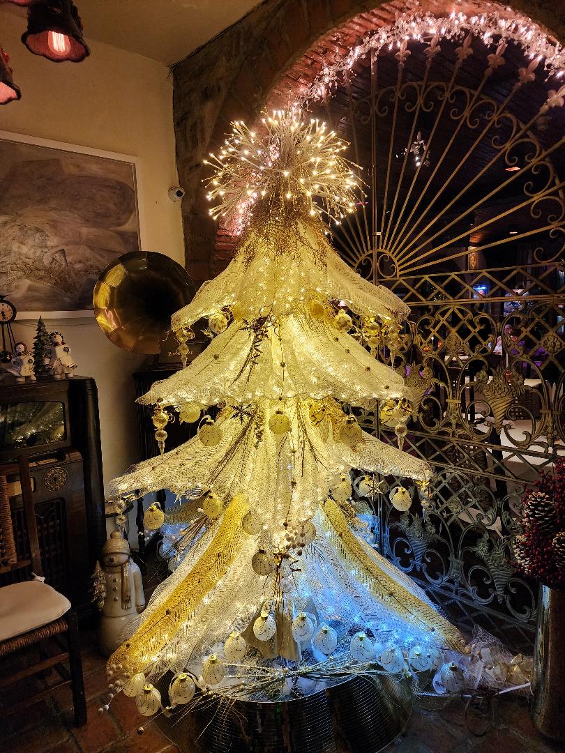 Inside the entryway was a huge white Christmas tree, immediately setting a festive tone. El Ladrillo is a family-run Puerto Rican restaurant with a distinctly old-school, almost clubhouse-like feel—intimate, warmly lit, and clearly beloved by people who know it well.